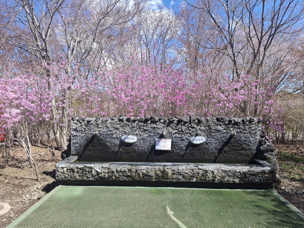 道路上のレーダードーム前の駐車場に水汲み場があります。